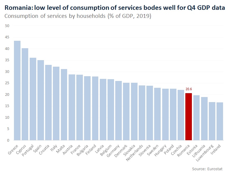 This is because the GDP share of services consumed by households is one of the lowest among the EU member countries (20.6% in 2019).