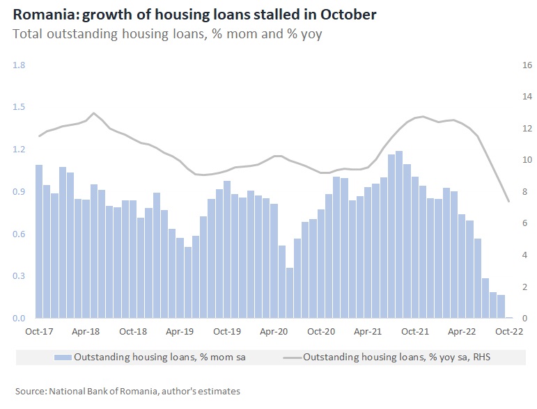 Lending for housing purposes has clearly lost speed starting the summer. Advance of outstanding housing loans decelerated visibly in July-September and stalled in October.
